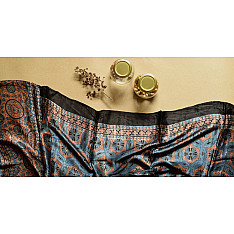 Ajrakh is believed to have the universe, or sky as its theme. Blue symbolizes the sky, red symbolizes twilight and the night is indicated by black. The white geometric motifs interspersed on the fabric are like stars on a dark night.