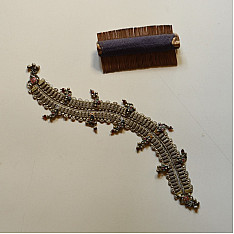 Chased faces of animals like elephant and tiger make the most popular endings for the rings. The plates are cut to get the desired outline of the pendant and impressions of the motifs are transferred onto them using hammers and dies. These pendants and ‘ghungroos’ are then attached to each other and to the main metal rod using linkages made of the wire. The process of finishing these ornaments brings out the real luster of the metal and is usually done with acid. The same ornaments are also made in white metal today.