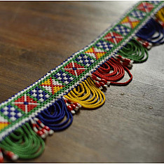 Rural women of Saurashtra have individually handcrafted these Toran and embellished them with colorful glass beads. As glass beads have been a symbol of prosperity and wealth since ancient times, these will surely fill your living spaces with goodwill and gaiety. (37" x 2.5" inch)