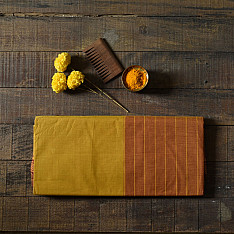 For the hands that have endured through each yard of the saree.... words floated out of the withered pages... took form in thoughts... “For patience is perseverance & patience is paramount... there are wonders for those who watch & hymns for those who hear... ” Rendered in the radiance of the finest Maheshwari silk, she was tenacious, serenity itself... (610 x 116 cm. ( Blouse Lined up in saree length ))