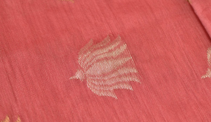 Lotus petals, often stylized and symmetrical, form a common motif on sarees. The motif shows a lotus blossom emerging from water, with multiple layers of petals (as on Chanderi or Paithani sarees). It symbolizes purity, divinity and rebirth, the lotus is sacred to Hindu gods (Brahma, Lakshmi, Saraswati all sit on lotus flowers) and to Buddhism and Jainism. Lotus designs often denote auspiciousness and are popular for bridal weaves, bringing blessings for marital happiness. This motif appears widely in handloom silk sarees of Chanderi (Madhya Pradesh), Kanchipuram (Tamil Nadu) and Paithani (Maharashtra) traditions, reflecting its all India appeal in classical art.