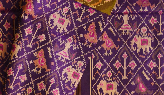 Elephants are depicted in profile or full-body poses, often walking or facing inward on saree borders. Traditionally seen as royal and auspicious, the elephant motif denotes strength, wealth and good fortune. It figures in mythology (Indra’s white elephant Airavata bringing rain, Buddha’s birth dream) and was a royal symbol as back in the days only kings owned elephants. This respect made it a favored motif in Mughal-inspired weaves. Banarasi brocades use gold-thread elephants to evoke imperial processions. In Patola double-ikat of Gujarat, the elephant motif is one of the oldest motifs, symbolizing fertility and linked to Indra’s rain bearing elephant (Airavata). Elephant motif is also widely seen on the Gadwal and Pochampally Sarees of Telangana as well as on the Kanchipuram Silk and Sundari Silk Sarees of Tamil Nadu. The motif is also prominently featured in Lucknow’s famous Chikankari embroidery.