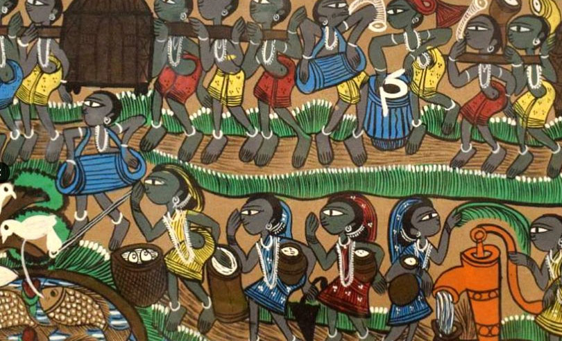 Pattachitra(also called Patua art) is a traditional narrative painting style from West Bengal, practiced for centuries. The art form combines visual storytelling, music, and oral tradition. Paintings are made on cloth or paper prepared with natural adhesives. Artists, known as patuas, paint long scrolls or single-frame artworks. Each scroll tells a story which is often from the Ramayana, Mahabharata, Mangal Kavyas, and folk legends. Traditionally, patuas travel from village to village, singing pater gaan while revealing the images panel by panel. Colours are derived from natural sources like stones, leaves, flowers, and soot. The style is marked by bold lines, flat colours, and expressive figures. The craft is still preserved in parts of Medinipur, Birbhum, Bankura, and Purulia till date. Pattachitra in Bengal has also received a Geographical Indication (GI) tag as a recognised craft form from the region. Today, Pattachitra also addresses contemporary themes, blending tradition with modern narratives.