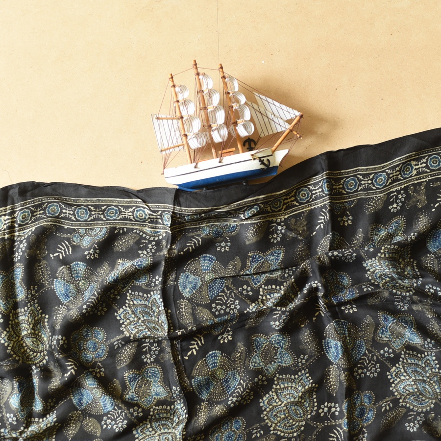 Bright chemical colours and synthetic fabrics swamped the market in the 1940’s, pushing Ajrak printing into a state of dormancy for almost fifteen years before it was revived in the ‘60s by the diligent efforts of a few craftsmen and patrons.
